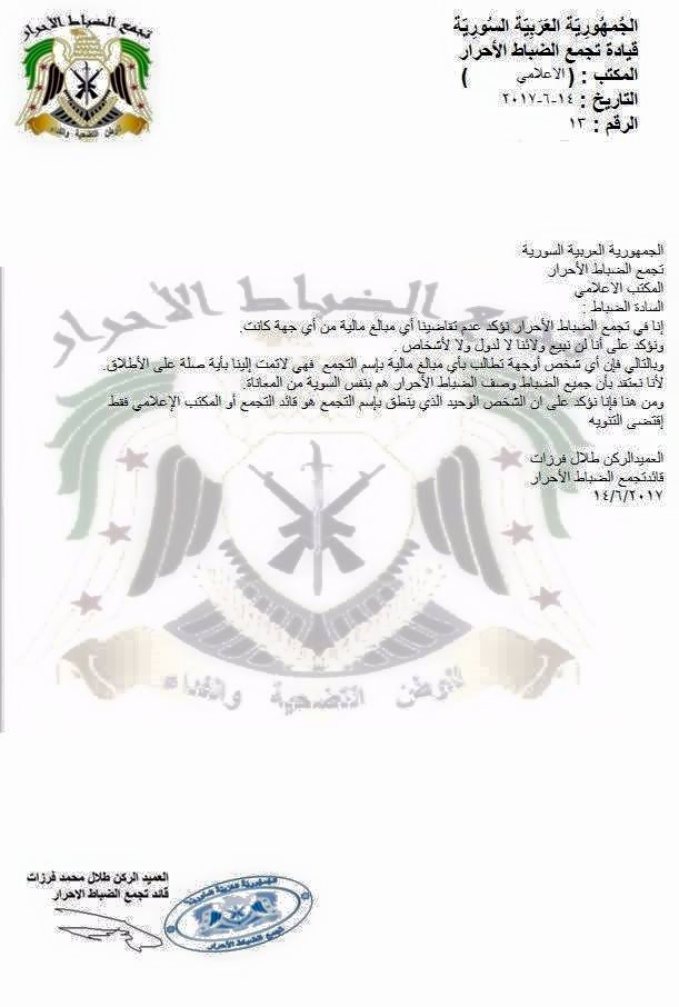 إنا في تجمع الضباط الأحرار نؤكد عدم تقاضينا أي مبالغ مالية من أي جهة كانت.