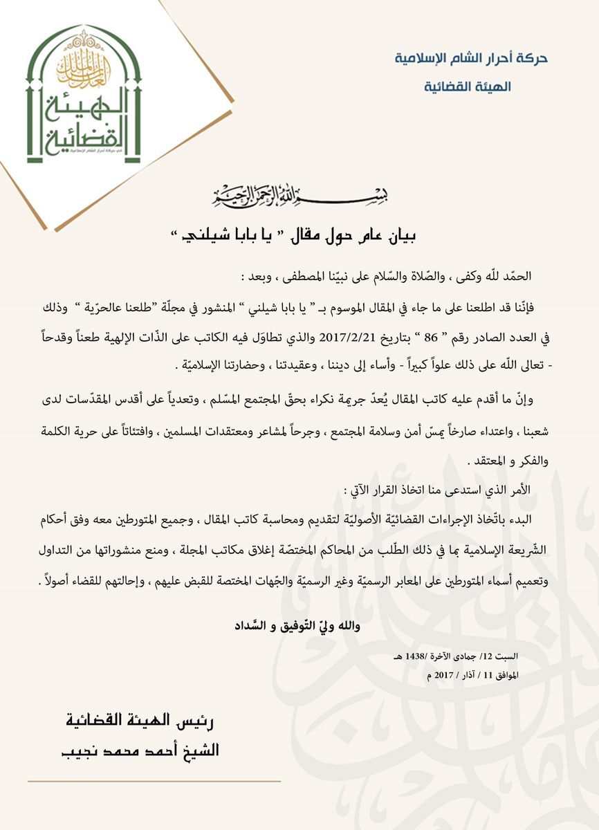 الهيئة القضائية لحركة أحرار الشامالمجموعات