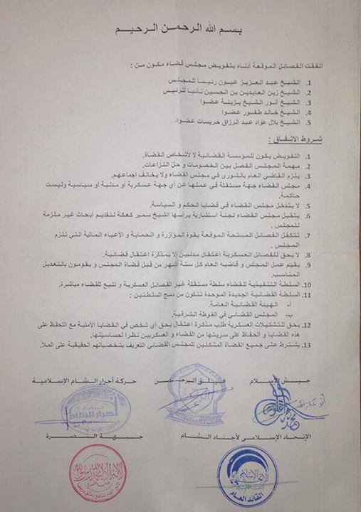 بيان توحيد القضاء في الغوطة الشرقية باتفاف عدة فصائل