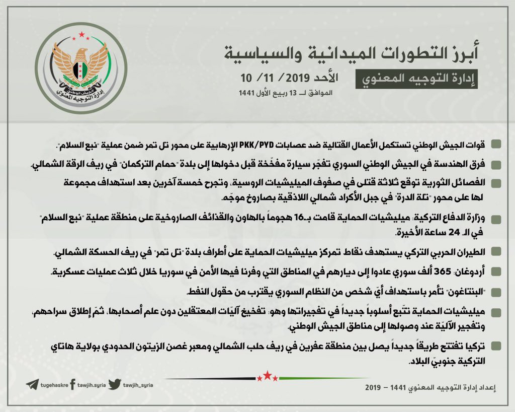 أبرز التطورات الميدانية والسياسية ليوم الأحد 10/11/2019