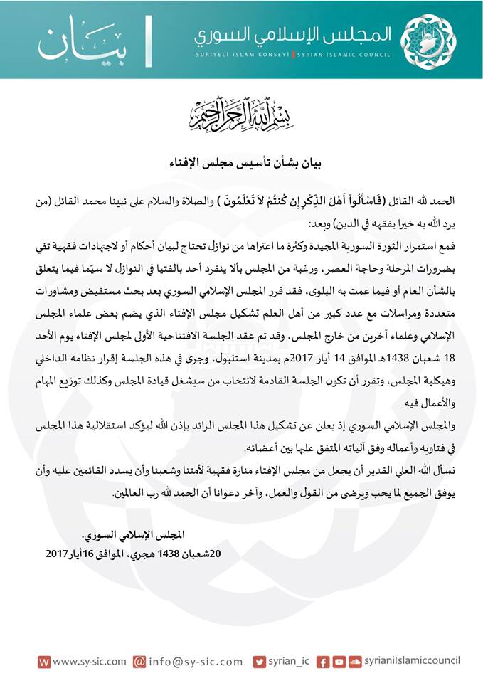 بيان بشأن تأسيس مجلس الإفتاء