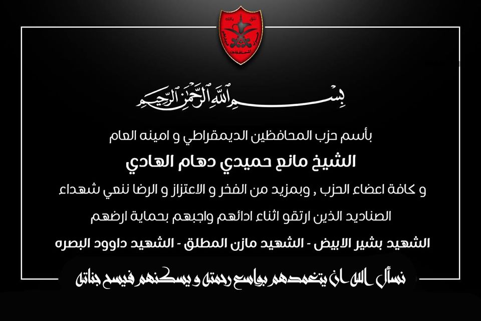 حزب المحافظين الديمقراطي ينعي عدداً من قتلى قوات الصناديد