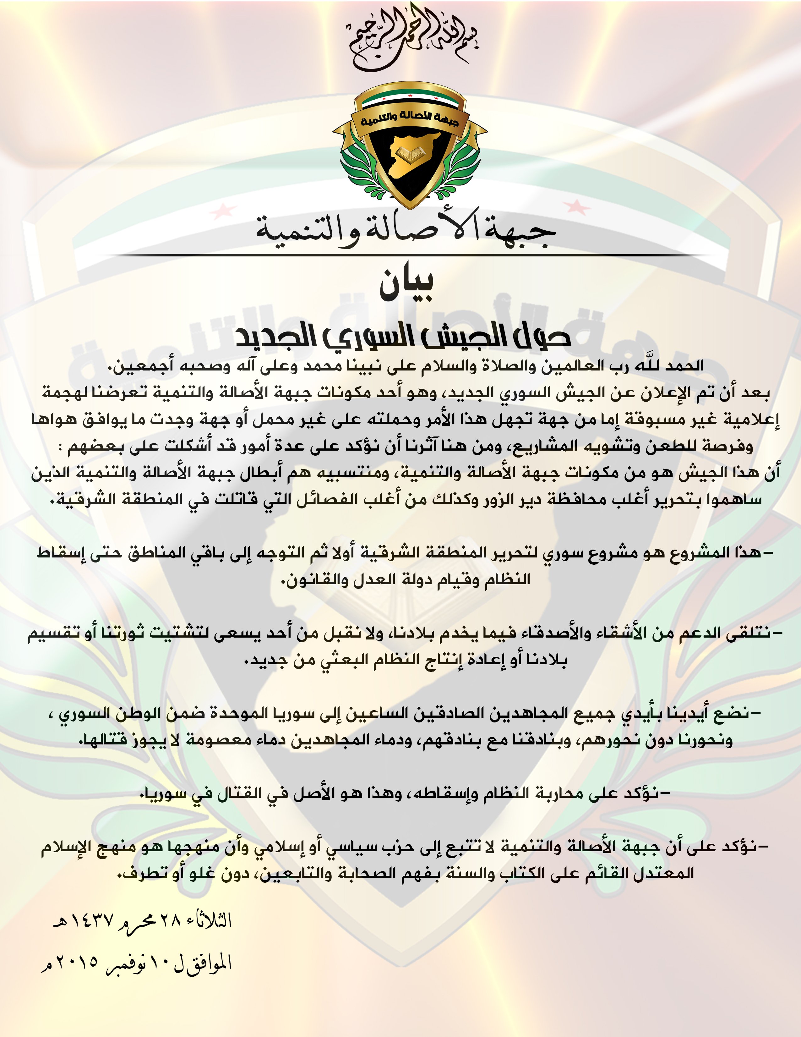 بيان تيار مواطنة حول جيش سوريا الجديد