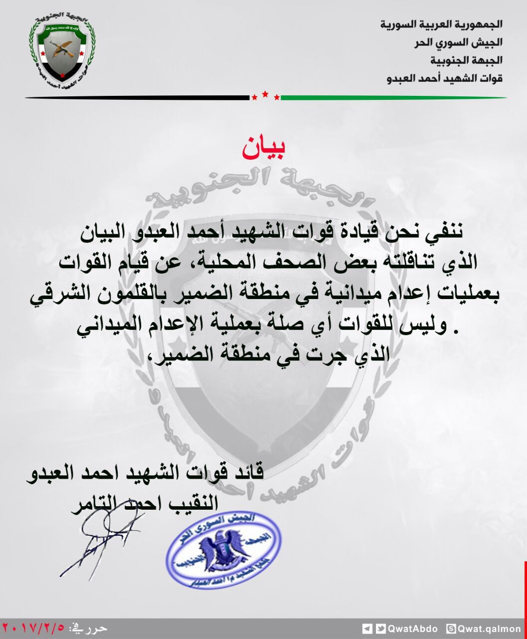 قوات الشهيد أحمد العبدو تنفي خبر صلتها بعمليات إعدام ميدانية نشرتها صحف محلية حصلت في الضمير