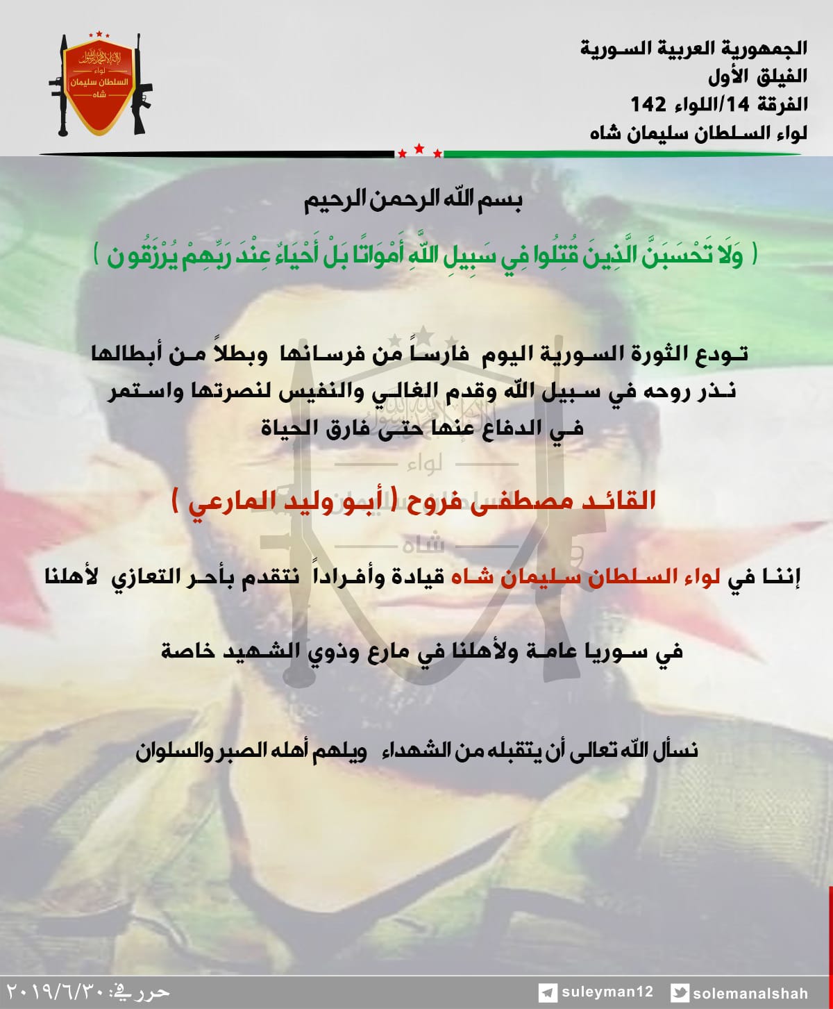 لواء السطان سليمان شاه يعزي أهالي مارع بالقائد مصطفى فروح