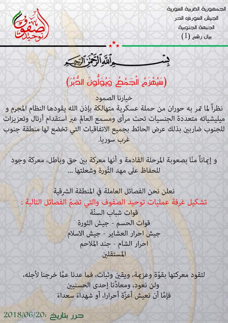 بيان تشكيل غرفة عمليات توحيد الصفوف