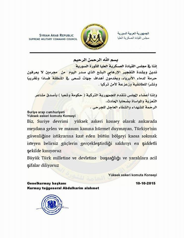 مجلس القيادة العسكرية العليا يدين التفجير الإرهابي الذي وقع في تركيا وتعزي الحكومة التركية بضحايا التفجير
