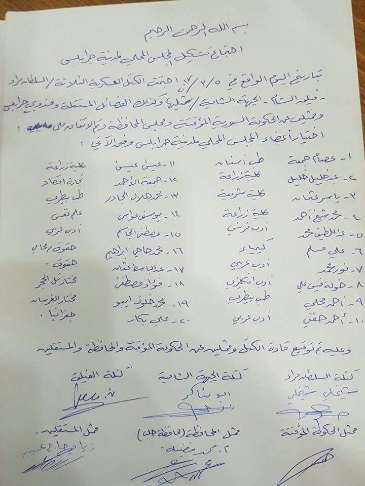بيان تشكيل المجلس المحلي لمدينة جرابلس