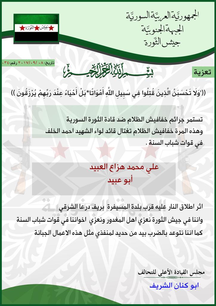 جيش الثورة يعزي قوات شباب السنة بالقائد علي محمد هزاع العبيد