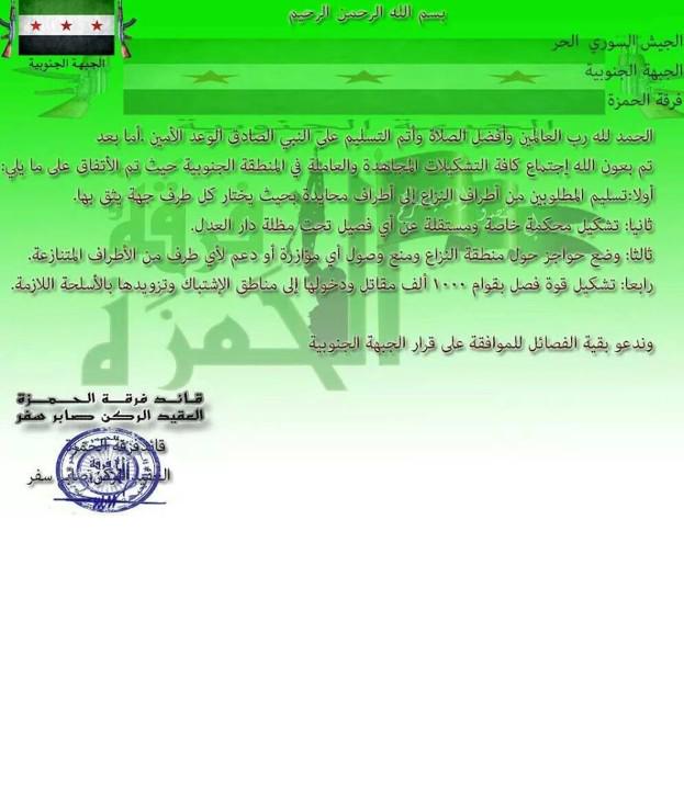 اتفاق بين عدة فصائل في المنطقة الجنوبية بشأن النزاع الحاصل في حوران