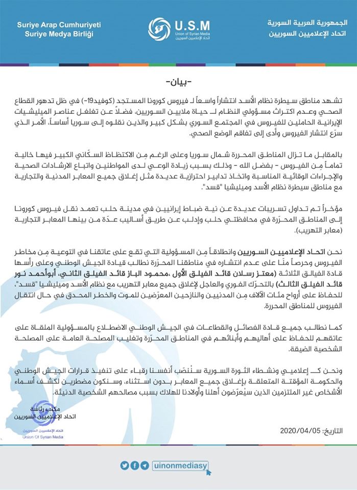 اتحاد الإعلاميين السوريين يطالب الفصائل الثورية بإغلاق كافة المعابر التجارية والمدنية مع مليشيا الأسد ومليشيا قسد