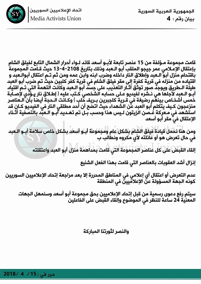 بيان بخصوص ماحصل مع الإعلامي عمر جيجو الملقب أبو العبد