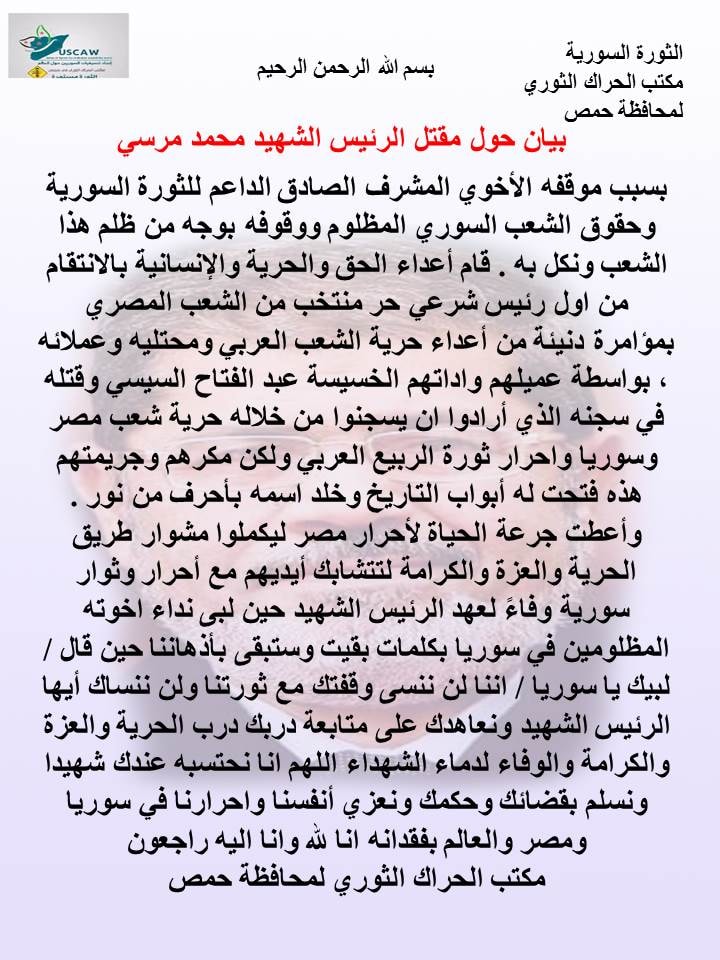 بيان حول مقتل الرئيس المصري السابق محمد مرسي