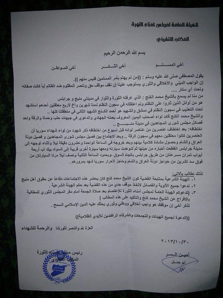 بيان صادر عن المكتب التنفيذي لمجلس امناء الثورة حول اختطاف الشيخ محمد كنج والدعوة للاعتصام