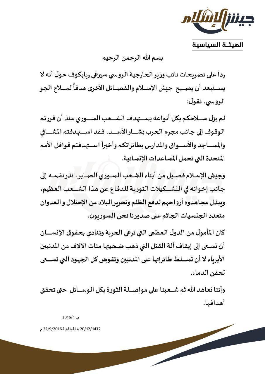 بيان رداً على تصريحات نائب وزير الخارجية الروسي "سيرغي ريابكوف"