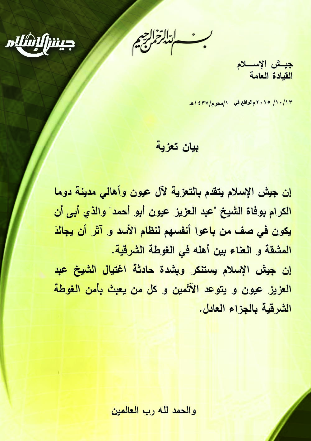 بيان تعزية بالشيخ عبد العزيز عيون (أبو أحمد)