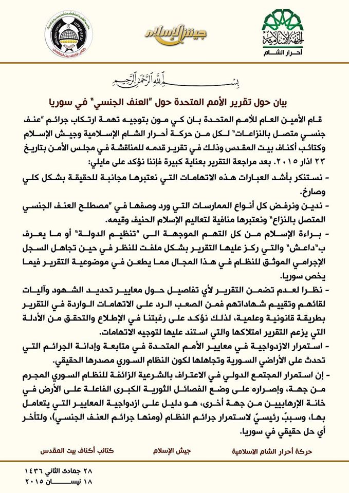 بيان حول تقرير الأمم المتحدة حول العنف الجنسي في سوريا