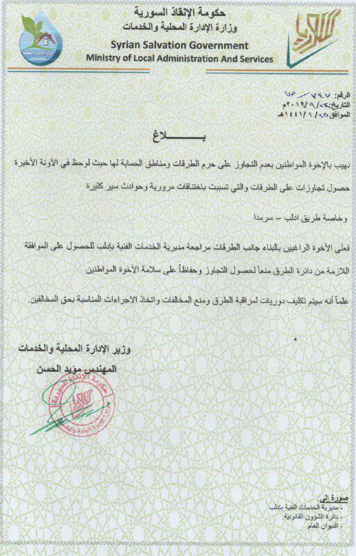 وزارة الإدارة المحلية والخدمات تصدر بلاغًا بخصوص التجاوزات على حرم الطرقات