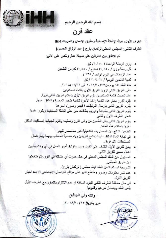 اتفاق بين المجلس المحلي لبلدة تركمان بارح وهيئة الإغاثة التركية لتأسيس فرن في البلدة