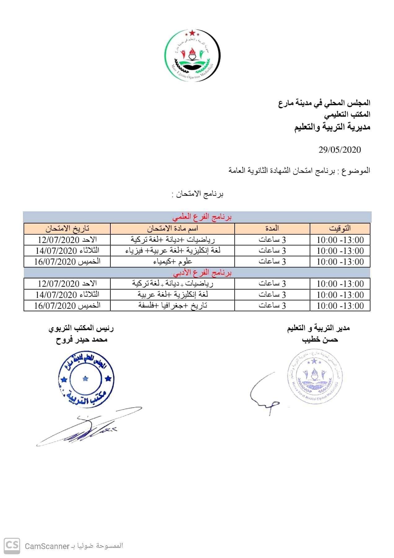 تعميم مديرية التربية والتعليم في مدينة مارع حول تأجيل موعد إمتحان الثانوية العامة