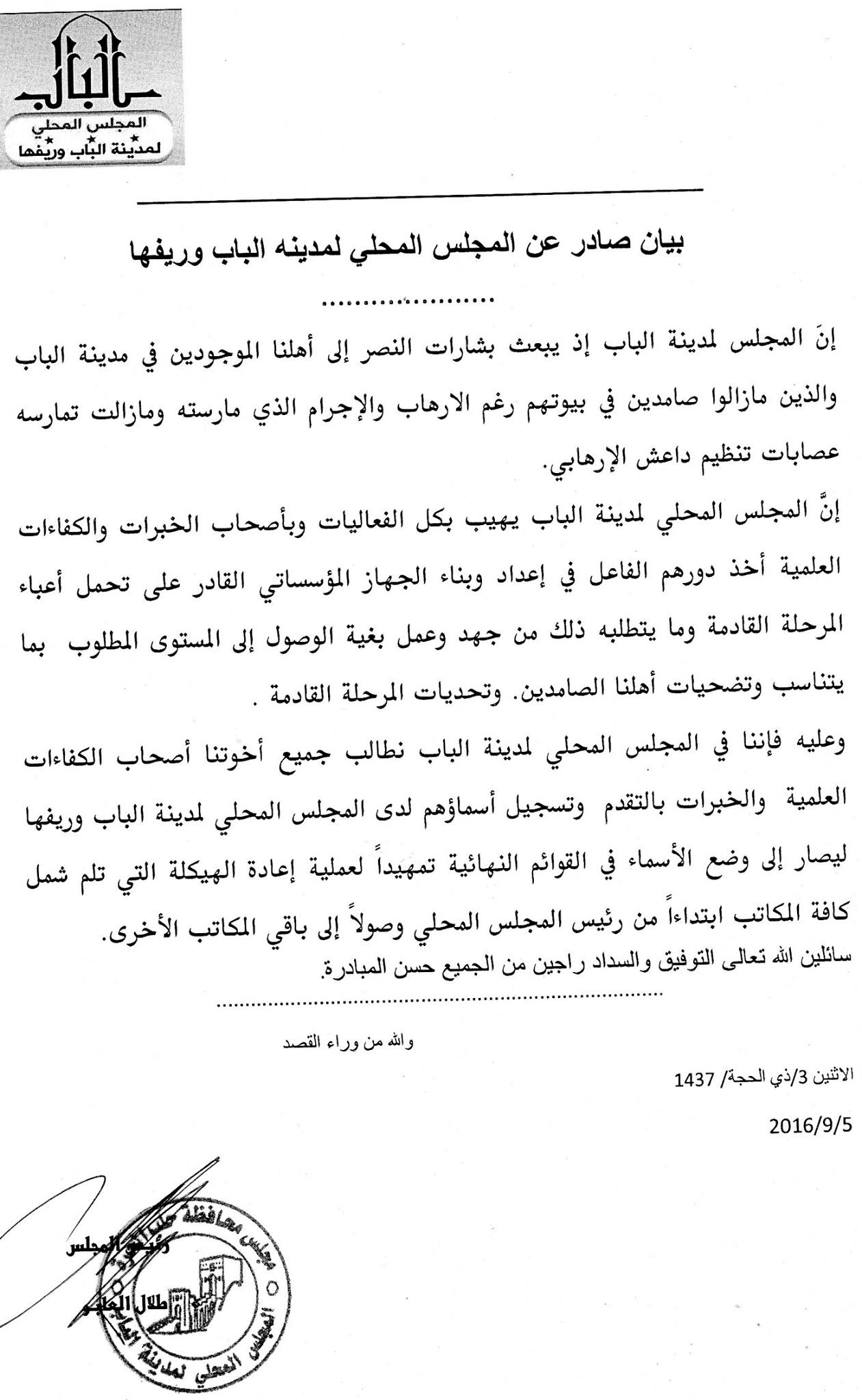 المجلس المحلي يدعو أصحاب الكفاءات العلمية لتسجيل أسمائهم لدى المجلس ليصار إلى وضع الأسماء في القوائم النهائية تمهيداً لإعادة الهيكلة