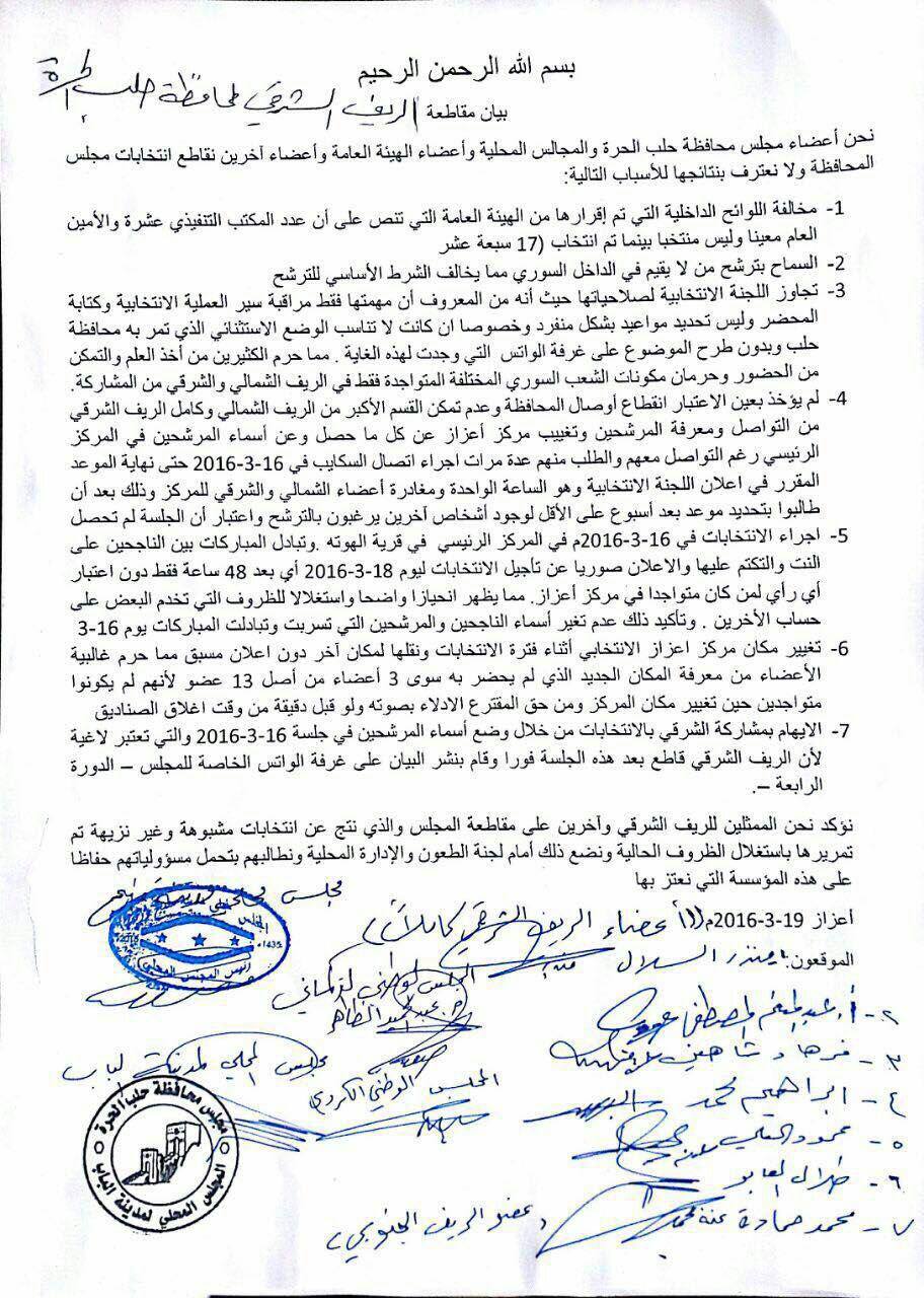 بيان من عدد من المجالس المحلية وأعضاء المجالس بشأن مقاطعتهم انتخابات مجلس المحافظة