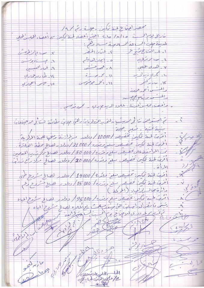 محضر اجتماع لجنة تمكين مع المجلس المحلي لمدينة حلب لتحديد موازنة المشاريع المبدئية و المشاريع التي تمت الموافقة عليها