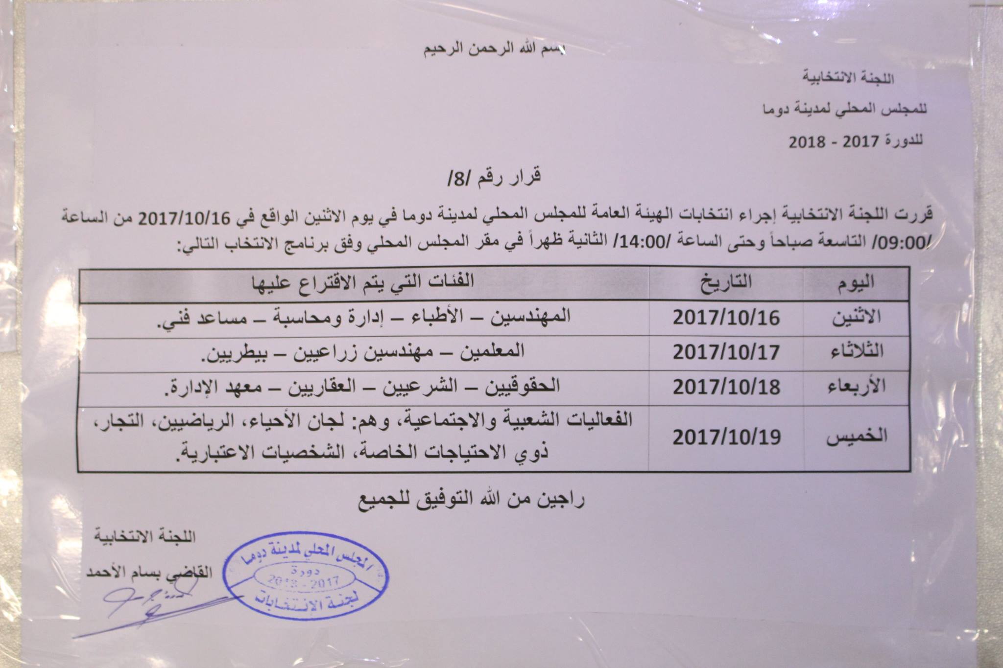 قرار من المجلس المحلي لمدينة دوما بشأن الإعلان عن بدء العملية الانتخابية للهيئة العامة للمجلس