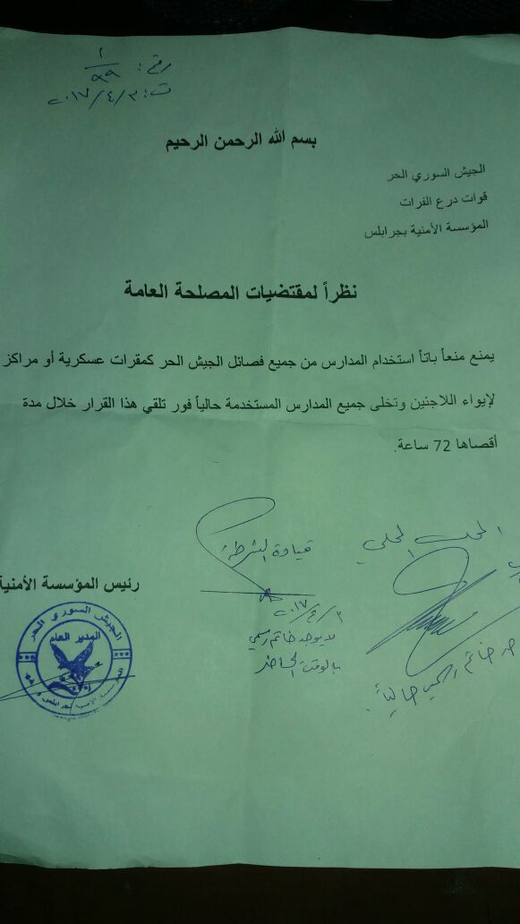 قرار ينص على اخلاء المدارس من المقرات العسكرية ومراكز الايواء لاعادة تفعيلها وعودة الطلاب اليها