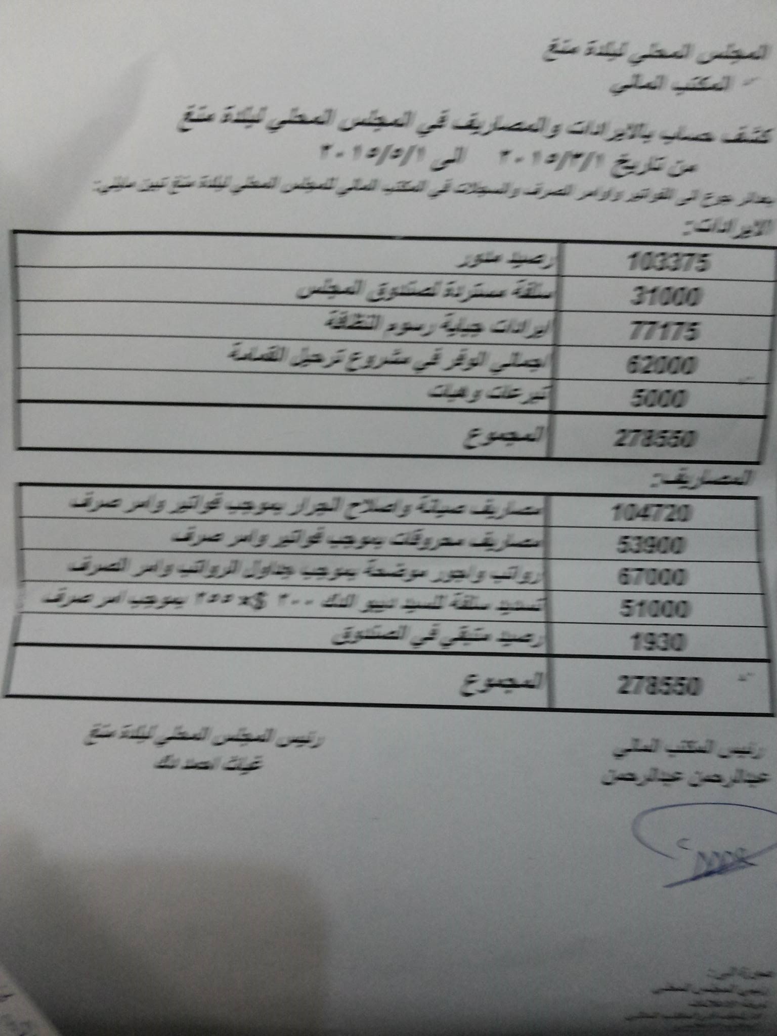 التقرير الأسبوعي لعمل المكتب المالي في المجلس المحلي في بلدة منغ ( صادر بتاريخ 1/3 )