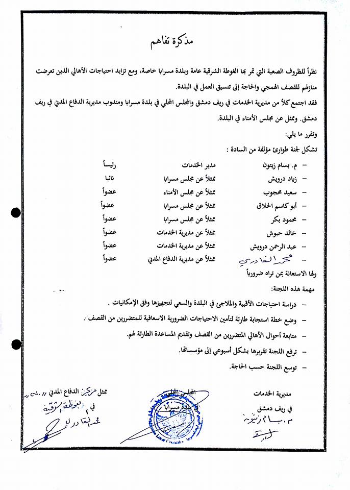 مذكرة تفاهم بين المجلس المحلي لبلدة مسرابا ومديرية الدفاع المدني بشأن تشكيل لجنة طوارئ في المدينة