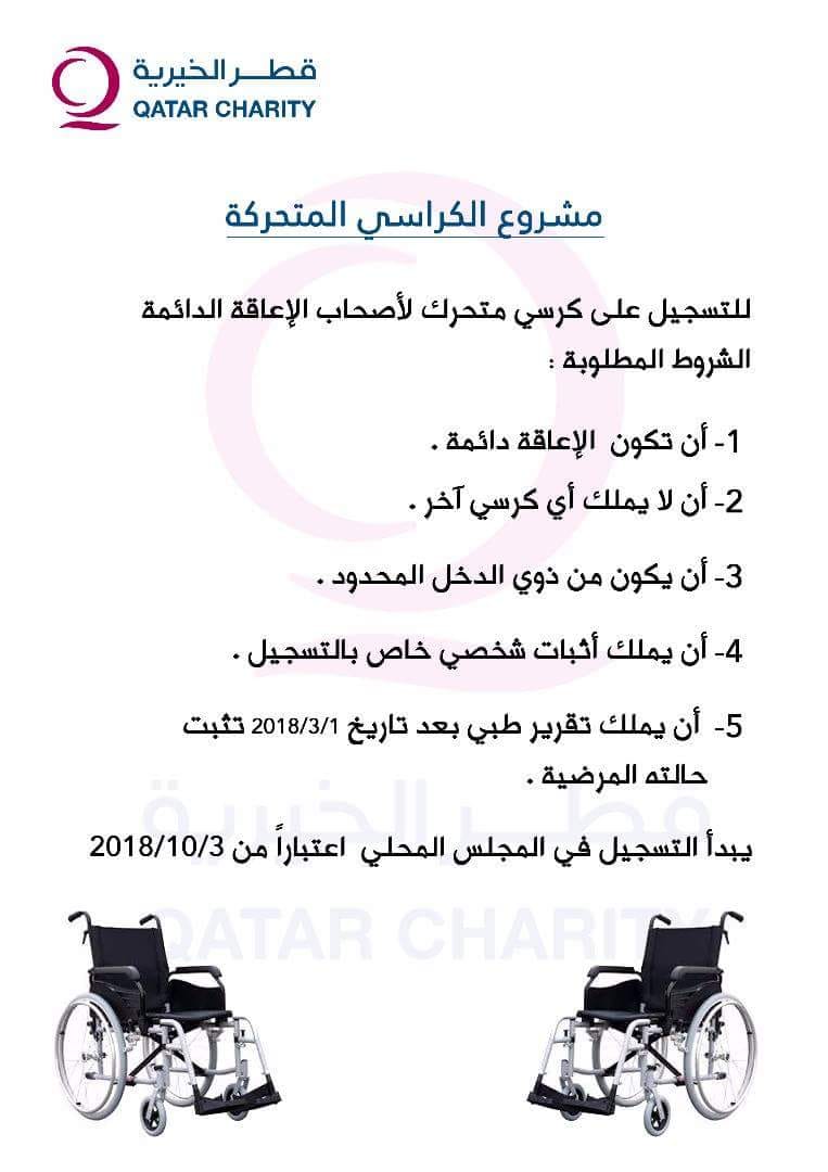 إعلان من منظمة قطر الخيرية بمشروع الكراسي المتحركة
