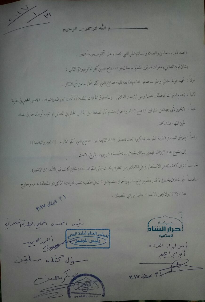 بيان حول الإتفاق لتحييد قرية العلاني عن الإقتتال الحاصل