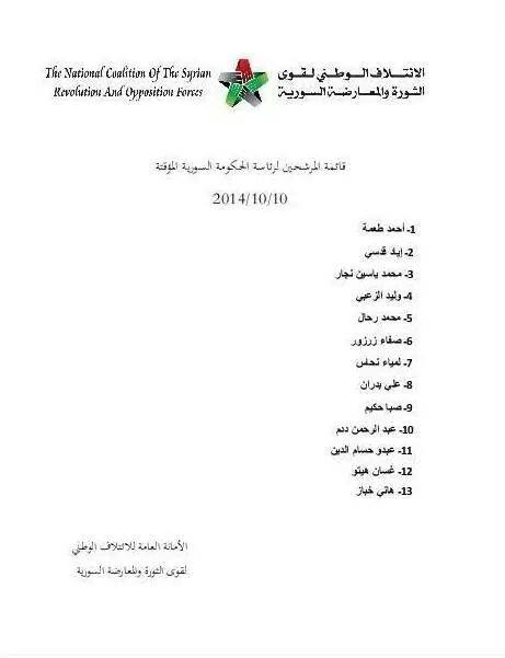 قائمة المرشحين لرئاسة الحكومة السورية المؤقتة