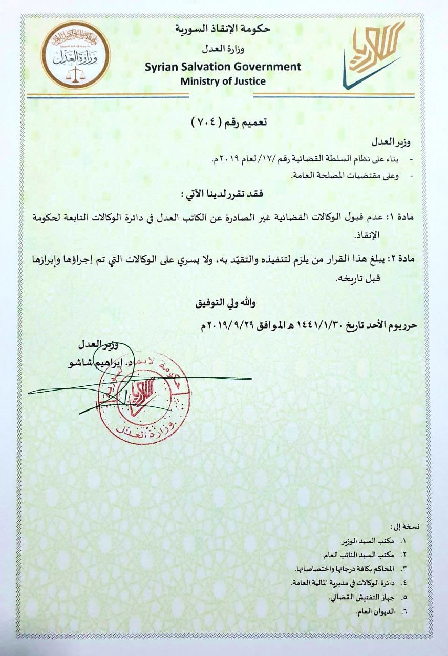 تعميم من وزارة العدل في حكومة الإنقاذ بعدم قبول الوكالات القضائية الغير صادرة عن الكاتب بالعدل في حكومة الإنقاذ