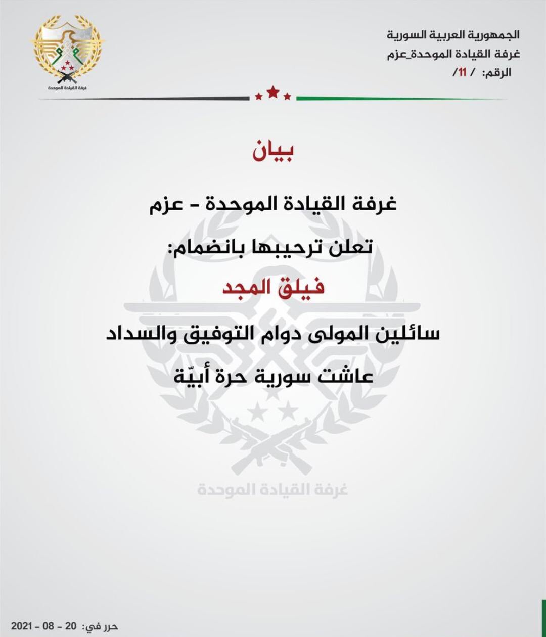 بيان من غرفة القيادة الموحدة عزم ترحب فيه بانضمام فيلق المجد إلى صفوفها