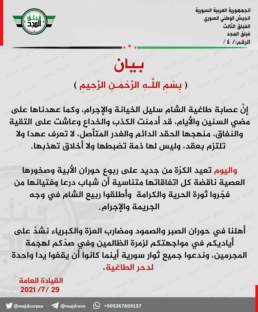 بيان من فيلق المجد يعزي فيه بوفاة الشيخ محمد علي الصابوني