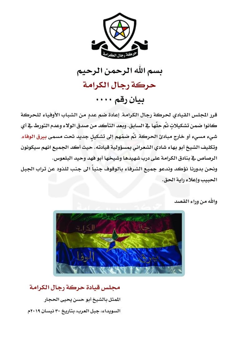 قرار من حركة رجال الكرامة بإعادة ضم بعض الشباب للحركة وتشكيل بيرق الوفاء