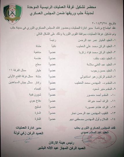 بيان من هيئة الأركان في وزارة الدفاع حول تشكيل غرفة عمليات عسكرية موحدة لمدينة حلب وريفها