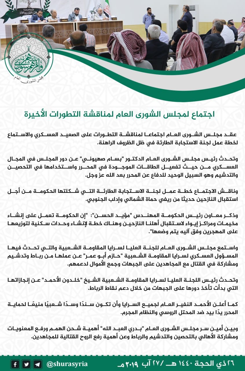 محضر اجتماع مجلس الشورى العام مجلس الشورى العام لمناقشة التطورات الأخيرة