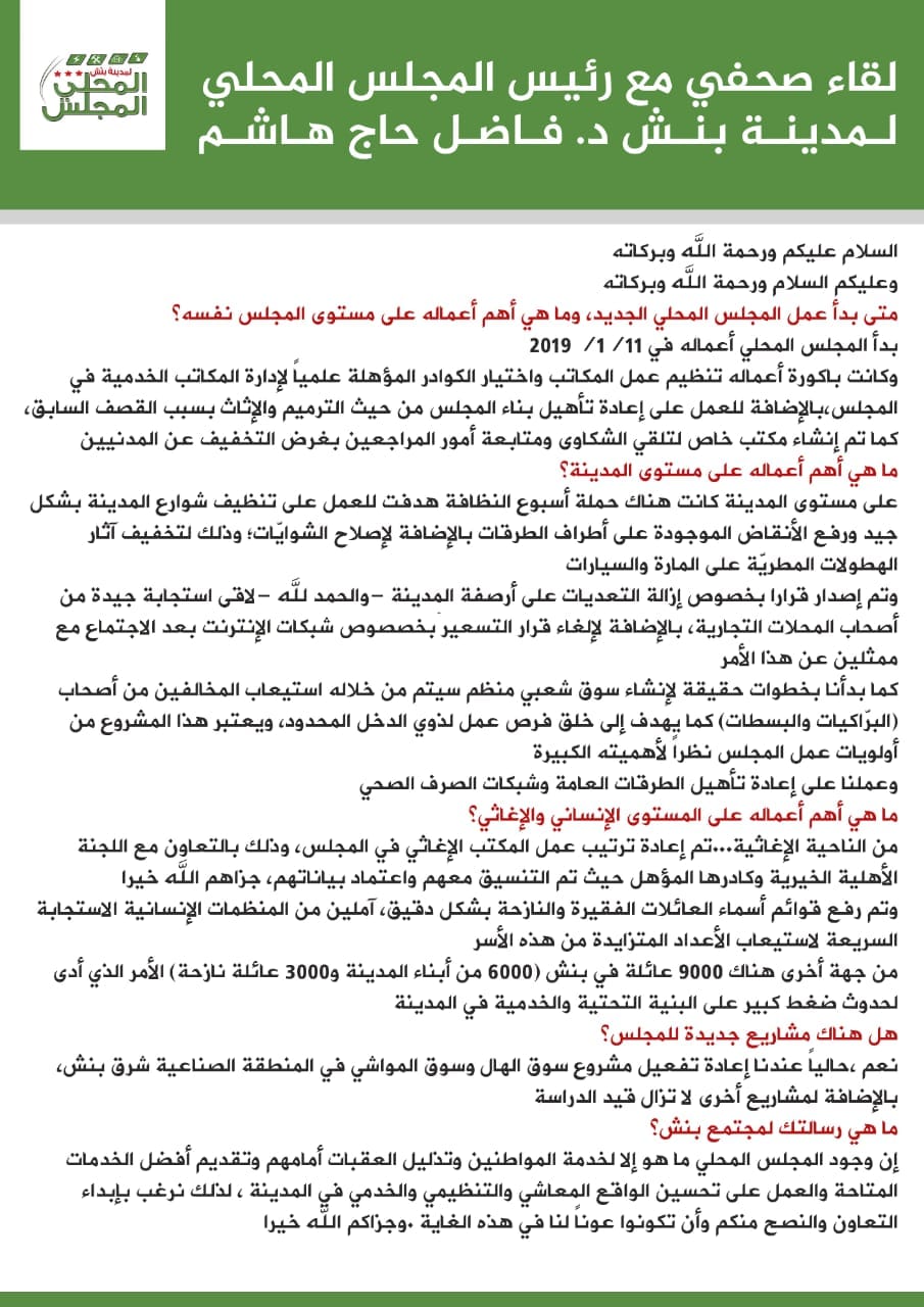لقاء إعلامي مع الدكتور فاضل هاشم رئيس المجلس المحلي في مدينة بنش