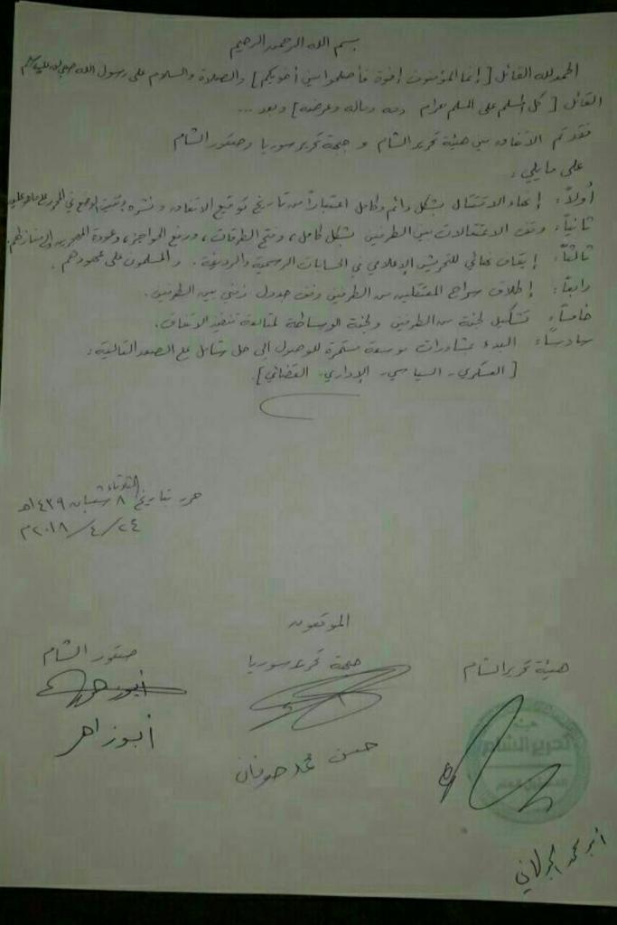 وقف إطلاق النار و الاقتتال بين جبهة تحرير سوريا وهيئة تحرير الشام