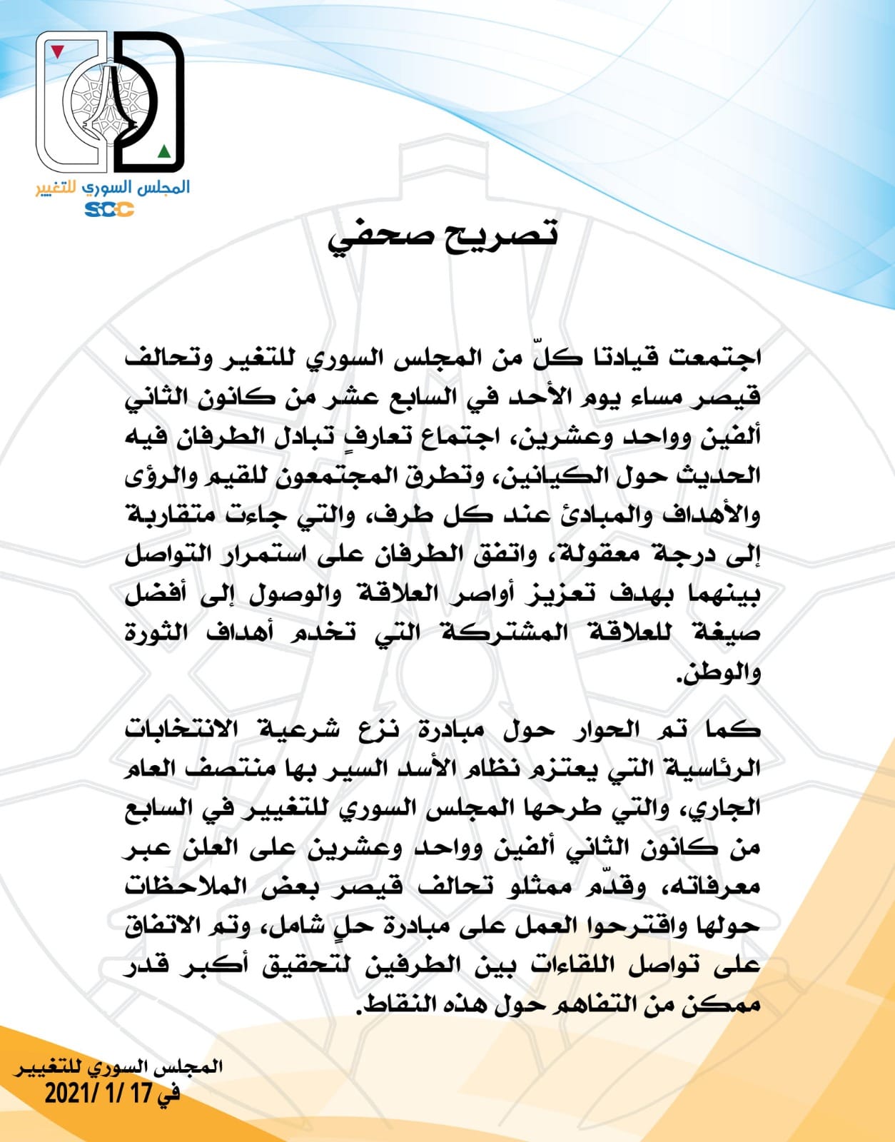 تصريح صحفي حول لقاء كل من المجلس السوري للتغيير وتحالف قيصر