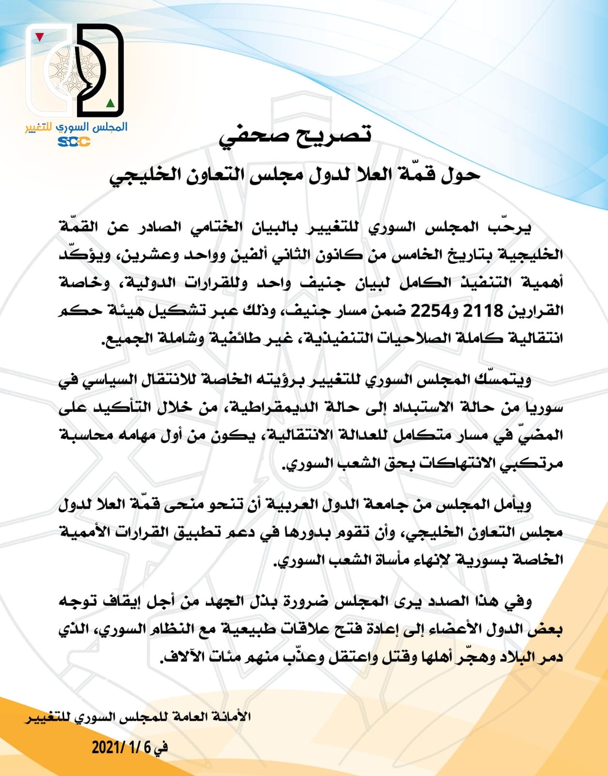 بيان ترحيب من المجلس السوري للتغيير حول قمة العلا لدول مجلس التعاون الخليجي