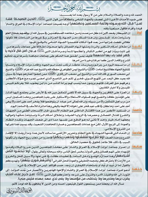 نصائح من أبو خالد السوري إلى جماعة دولة الإسلام في العراق والشام