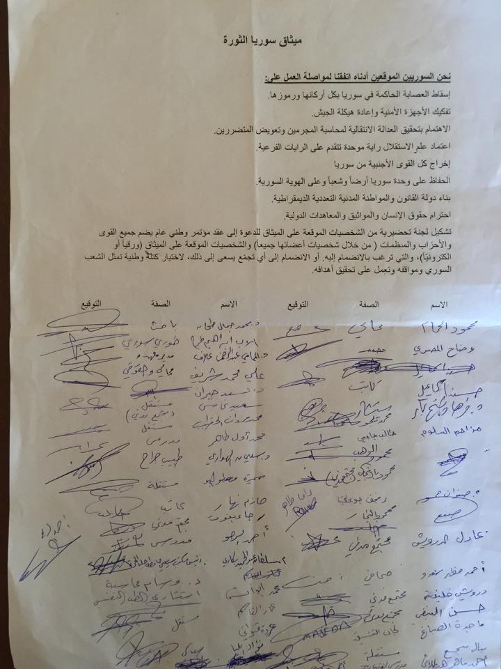 نحن السوريين الموقعين أدناه اتفقنا لمواصلة العمل على: