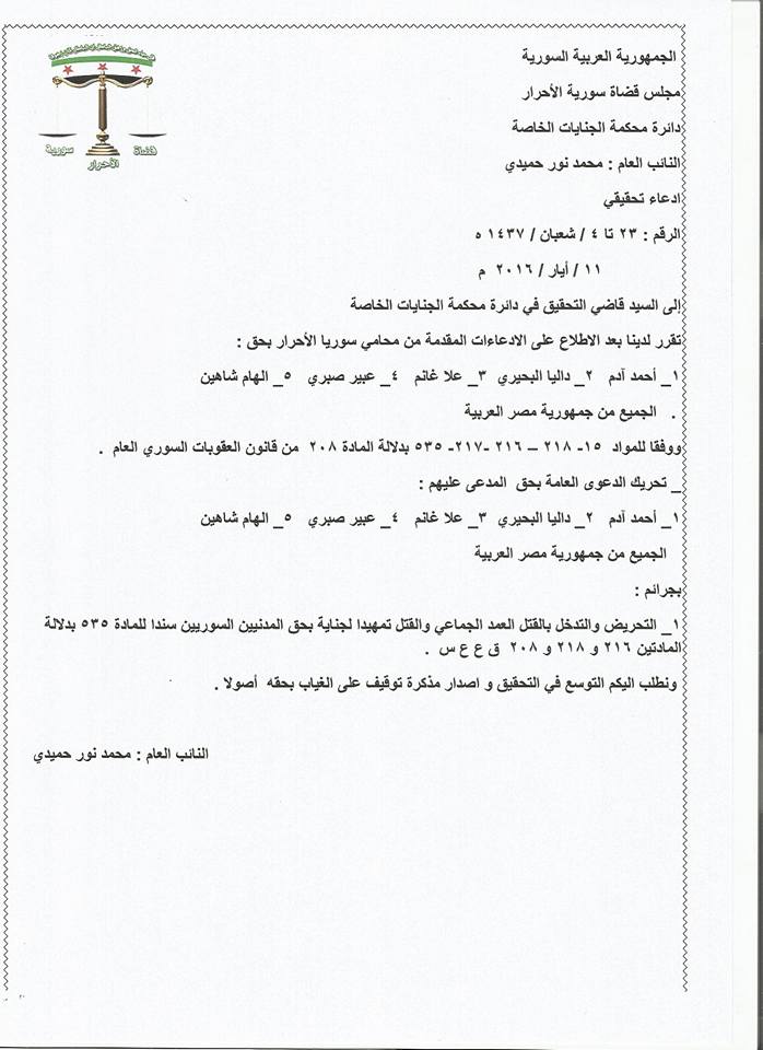 قرار "مجلس قضاة سورية الأحرار" إصدار مذكرة توقيف بحق ممثلين مصريين