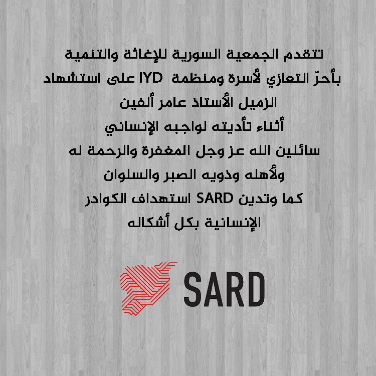 بيان من منظمة SARD تعزي فيه منظمة IYD بالزميل الأستاذ عامر ألفين