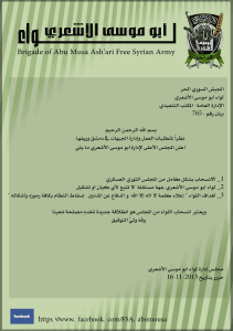 بيان انسحاب لواء أبو موسى الأشعري من المجلس العسكري الثوري في دمشق وريفها