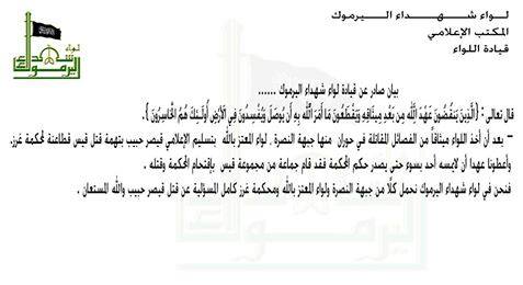 بيان صادر عن قيادة لواء شهداء اليرموك ......